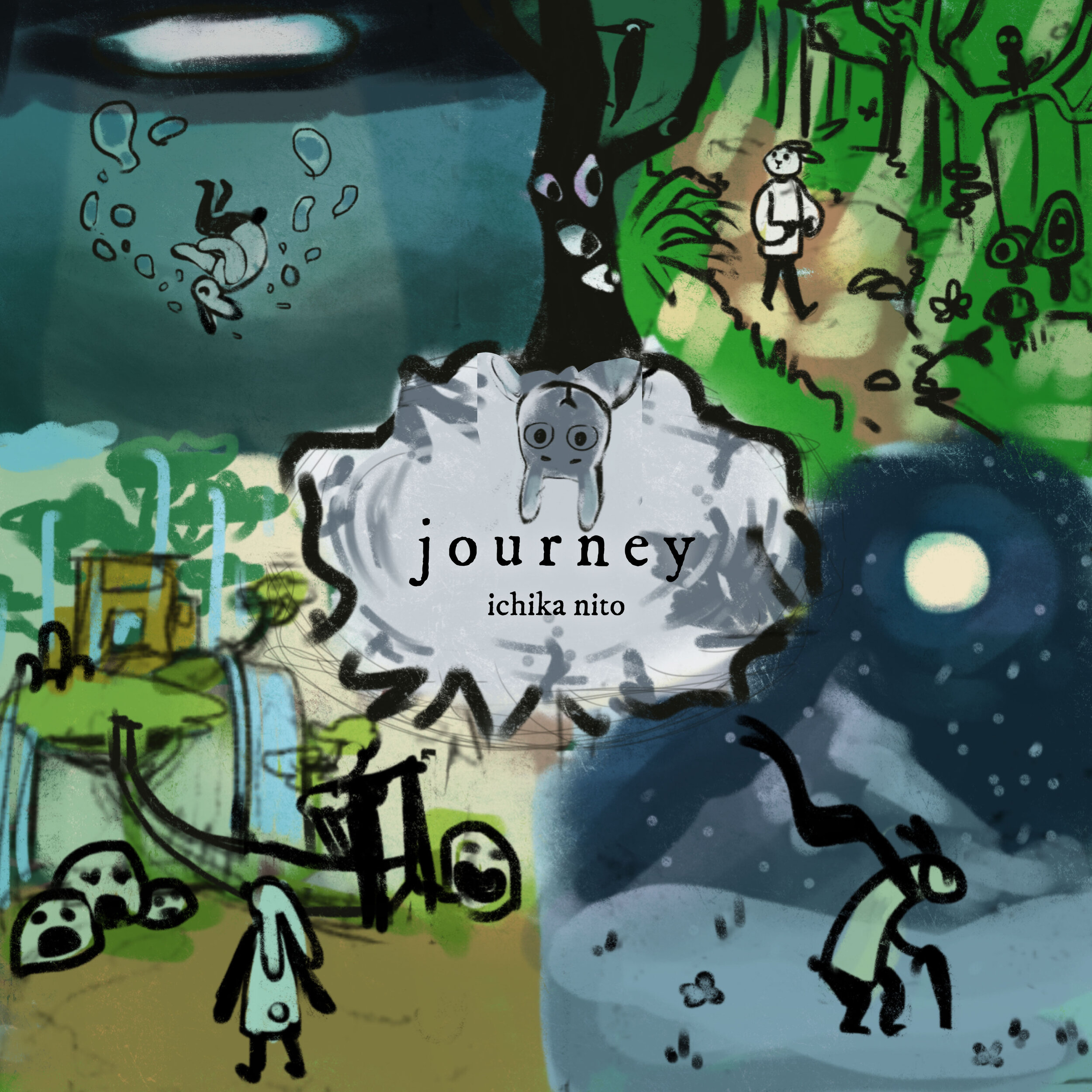 The delicately layered instrumentals in Ichika Nito’s math rock EP, Journey, are brought to life in this album cover redesign. Illustrated scenes of a rabbit’s adventures bleed together in the same way that the music seamlessly carries the listener through each song. The vivid, surreal imagery in this system allows the listener to imagine a story and follow it across platforms, both digital and physical.